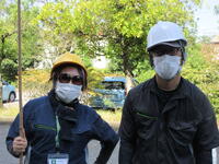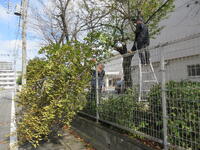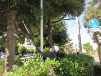 1日目は敷地の外に伸びた枝が電線にかかっていたので、枝を切り、安全対策を行いました。
