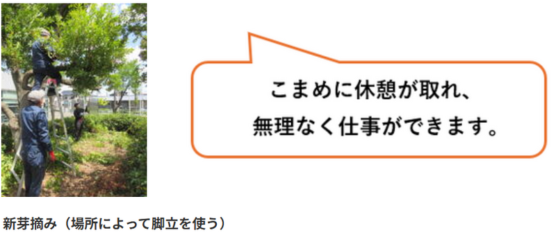 伐採作業は手ノコを使用して二人で交代しながら作業し、伐採した細かい木の枝を伊勢崎組に片付けてもらうという