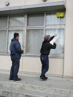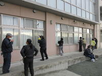 別日に第五中学校様からの依頼で、校舎の窓拭き作業の続きを合同で行いました。
