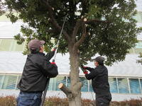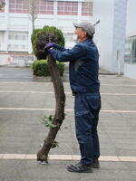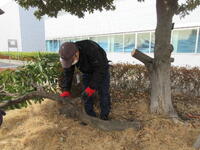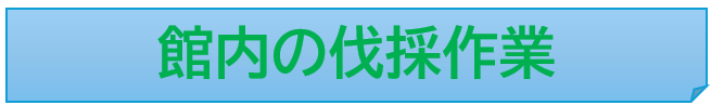 太い木は時間をかけて、交代交代しながら高枝ノコギリで一生懸命伐採し、身長程の長さの太い木を何本も落としました。
