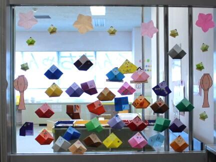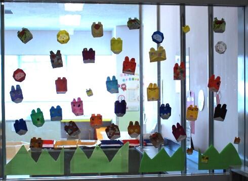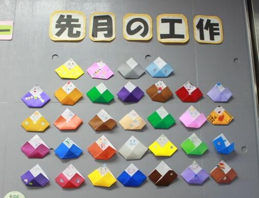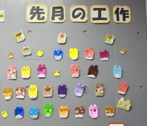 先月の工作は、エレベーター横の壁に飾ってあります