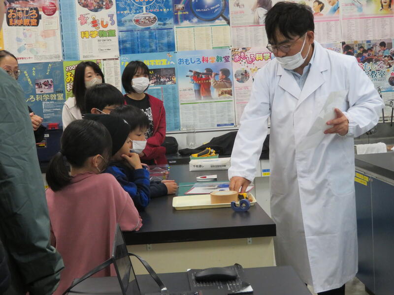 11月9日(土)サイエンスショー⑥ 今回は磁石の反発やモーターのしくみについてのサイエンスショーでした。コマが宙を浮いて回っている姿などにびっくりしていました。