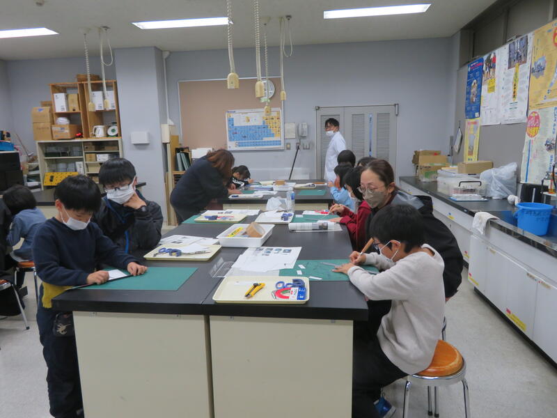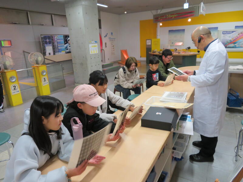 12月21日(土)おもしろ科学教室⑧「ステレオスコープで飛び出す月を見てみよう」 ものが立体に見えるステレオスコープとアナグリフめがねを作り、自分で撮影した写真で確認しました。「本当に立体に見える!」と感動していました。