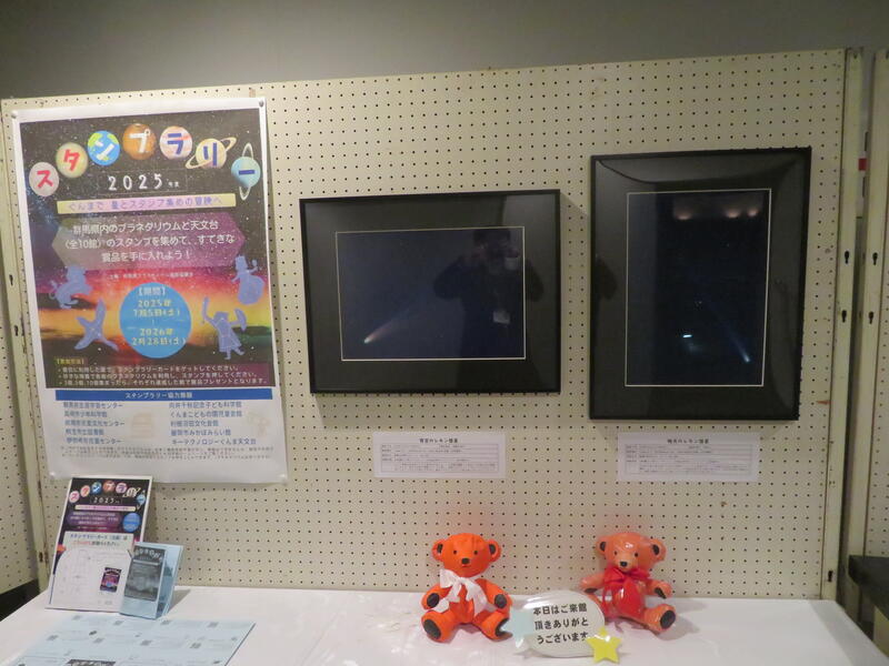 12月11日(木)「2025年秋のすい星」 群馬星の会の方が撮影した今年のすい星をプラネタリウムの出口側に展示しました。実物の写真はとてもきれいで感動的です。ぜひ、観に来てください。 |