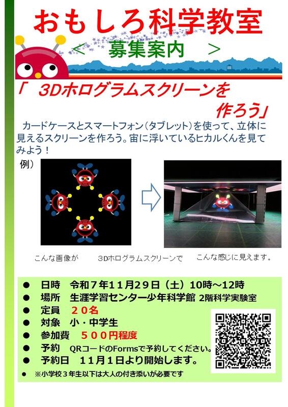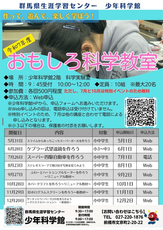 ※ご不明な点がございましたら、少年科学館(027-220-1876)にお問い合わせください。